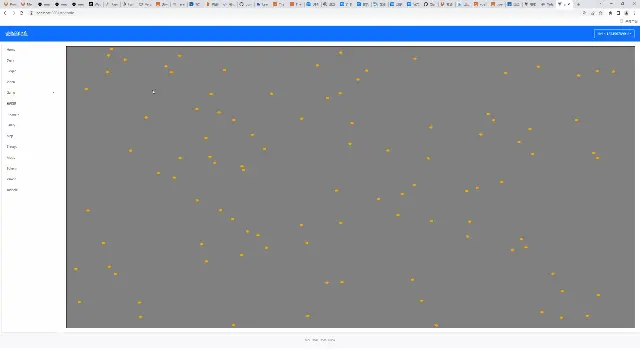 但是这显然不是我们想要的,因为每一个点的运动,似乎都朝向了一个方向,显得很僵硬。原因在于,生成的随机值当然是不一样的,只是这个向量值够小,同时我们更新的时候,只是单纯的add相加的方式,导致了上述的结果。太low。我们想尽可能的,让蝌蚪的运动,逼真化。随机向量的值范围在0-1,我们给个[-1, 1]同时加大幅度10倍,效果如何呢?