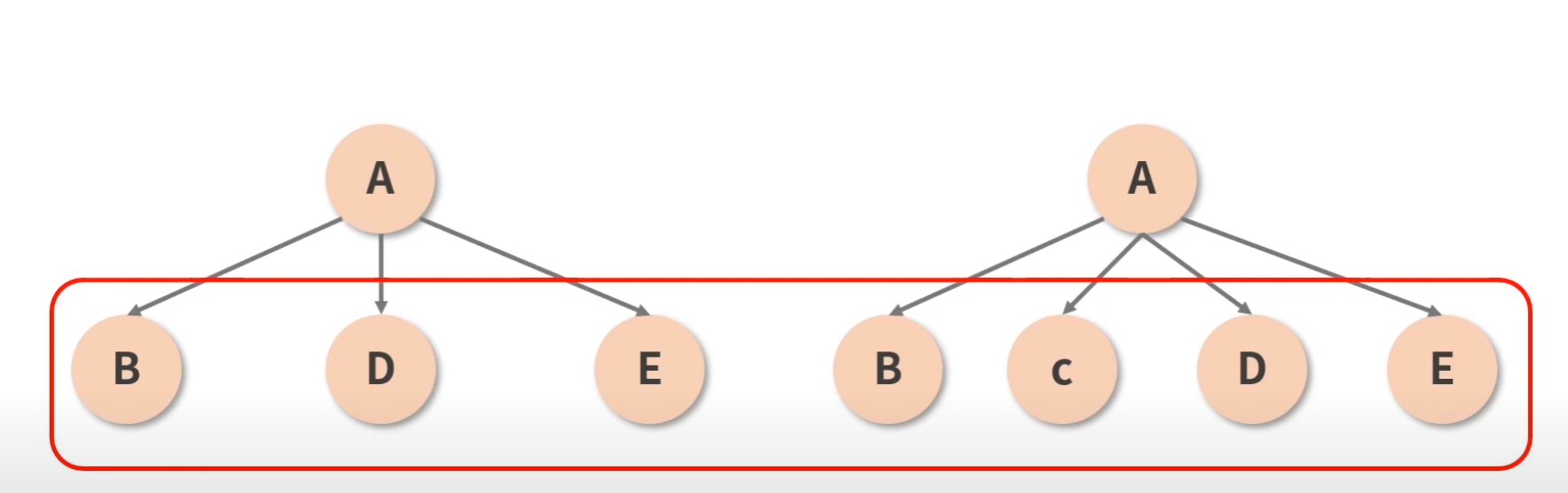 - 先对比连个根节点,是否为同一个元素,判断依据